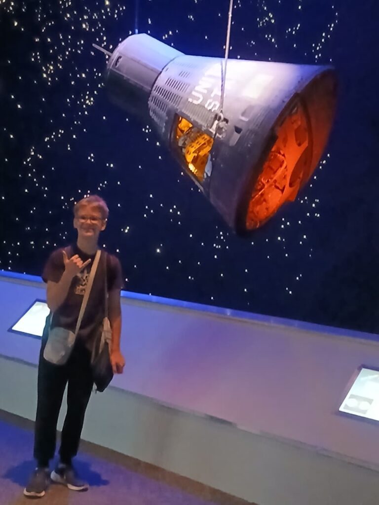 Além das aulas, o grupo fez diversos tours por áreas restritas do Johnson Space Center, conhecendo espaços que não estão abertos ao público geral. Pedro pôde ver de perto estruturas como o Saturno V, Falcon 9, Space Shuttle, cápsulas de foguete, laboratórios de simulação espacial, o Museu da NASA e muito mais.
